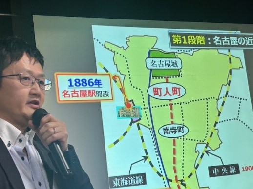 北見昌朗の講演「古地図を手に名古屋の歴史を語る」